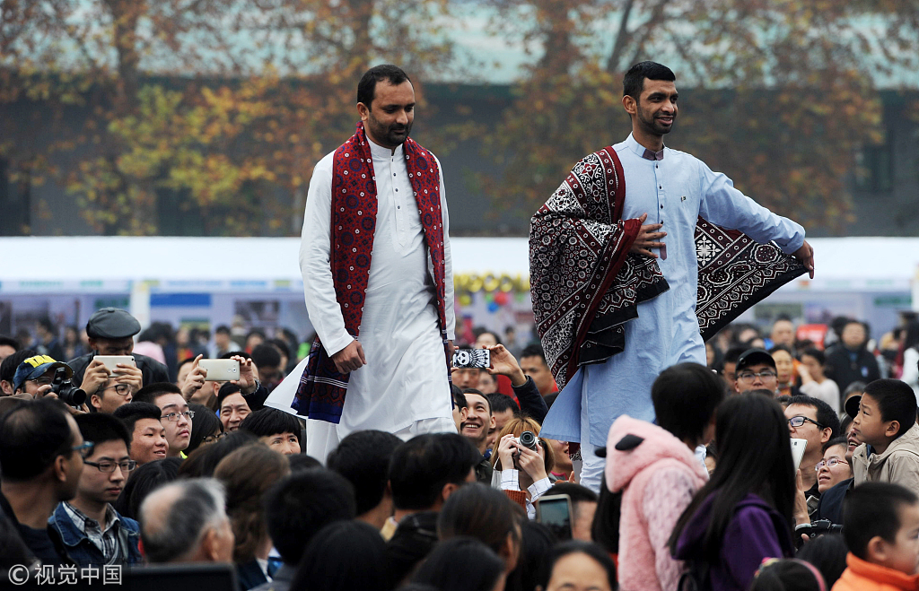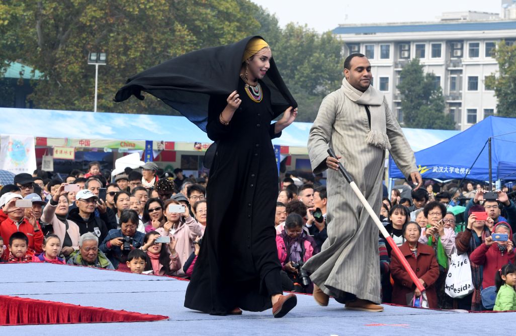 Students from Egypt model traditional clothing during an international cultural festival at Wuhan University, Hubei province, on Sunday. The event drew students from more than 80 countries who celebrated their culture with their Chinese classmates.