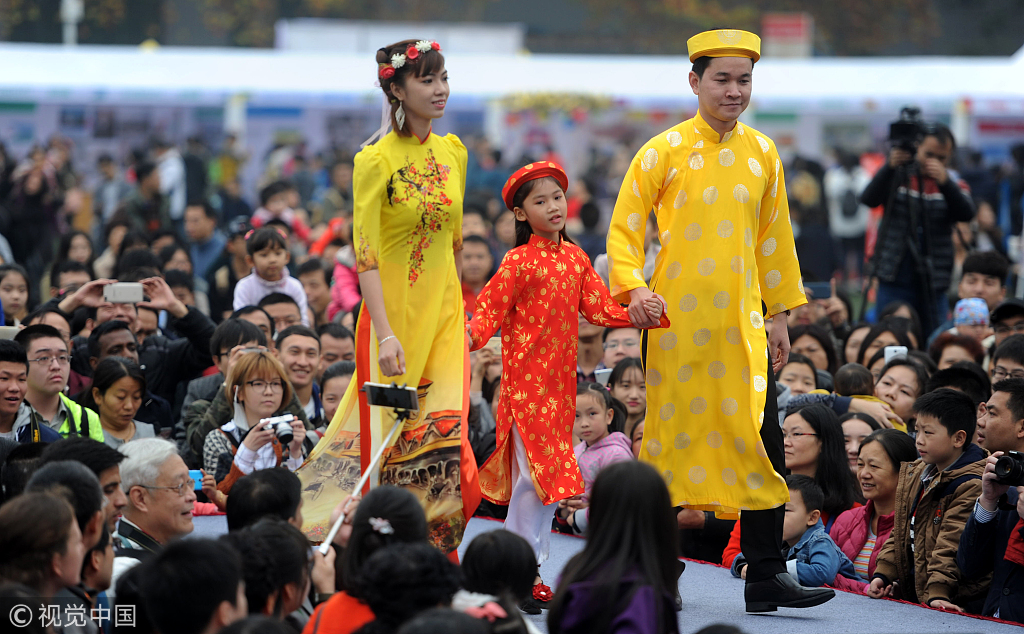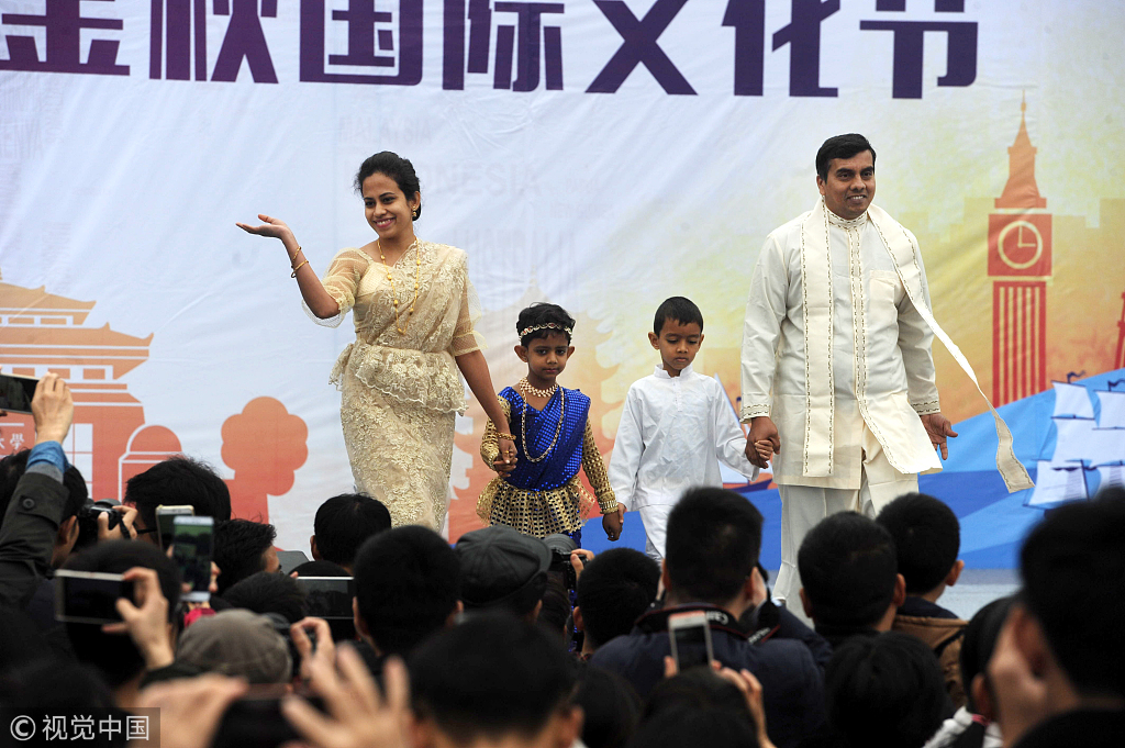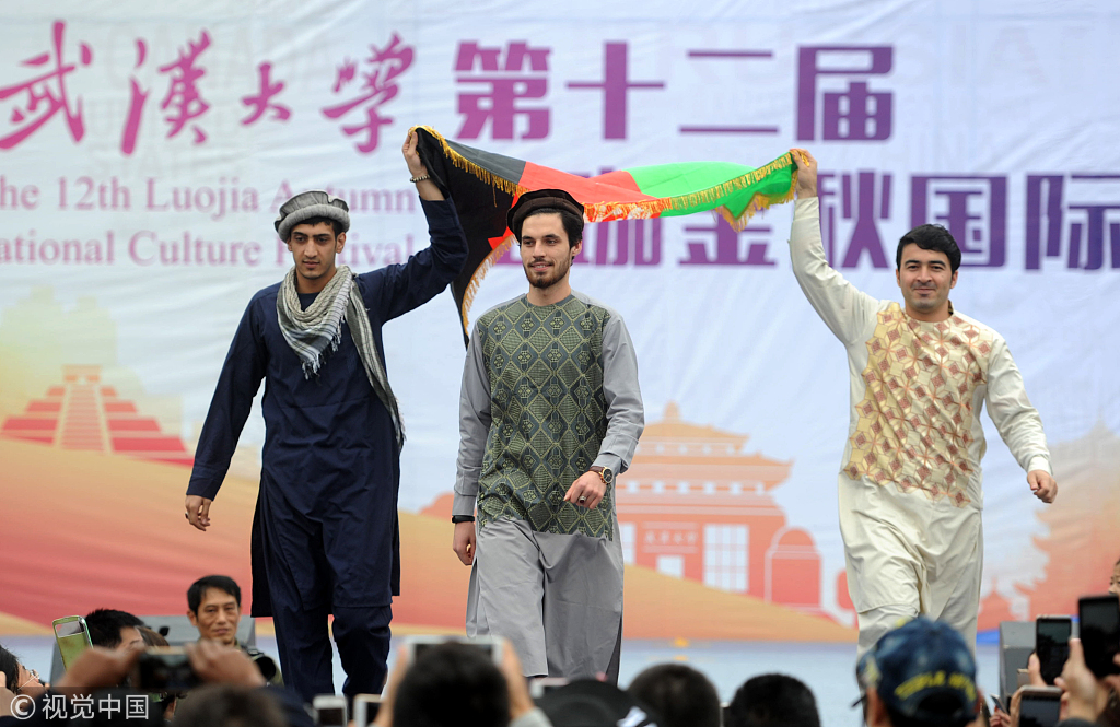 Students model traditional clothing during an international cultural festival at Wuhan University, Hubei province, on Sunday. The event drew students from more than 80 countries who celebrated their culture with their Chinese classmates. [Photo/VCG]