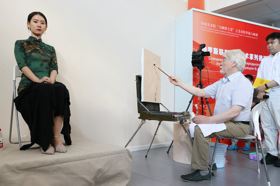 He recently returned to the capital to celebrate NAMOC's 60th anniversary and on Sunday, gave a lecture at the museum on Russian art and his work. His audience included Chinese artists, professors and students from the Central Academy of Fine Arts and Beijing Normal University who were revealed to the history of Russian painting and Lednev's career development. The painter also gave a demonstration of portrait making, which he has committed to throughout decades.