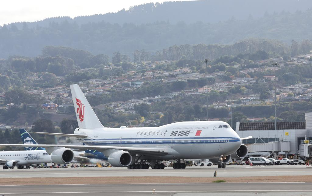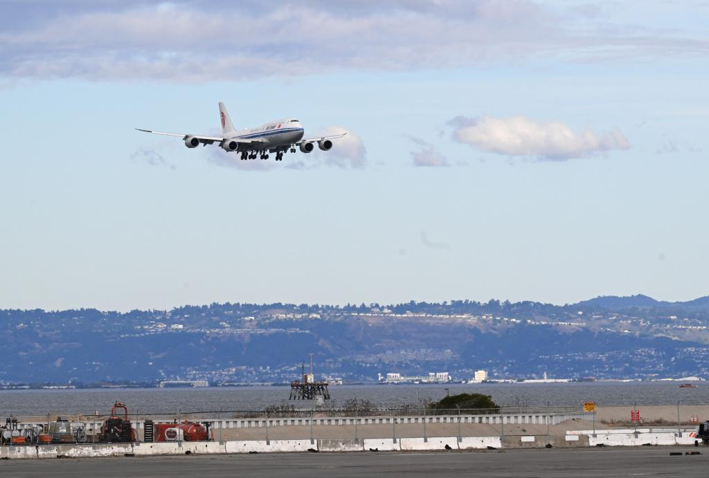 President Xi Jinping's plane arrives in San Francisco, the United States, Nov 14, 2023. Xi on Tuesday arrived in San Francisco for a summit with US President Joe Biden, and to attend the Asia-Pacific Economic Cooperation (APEC) Economic Leaders' Meeting. [Photo/Xinhua]