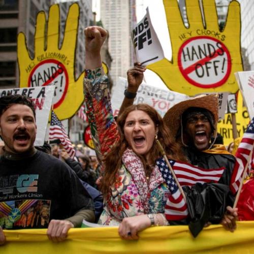 The demonstrations featured a wide array of protest signs and slogans, such as "End Oligarchy", "Let Gaza Live" and "Save Social Security".