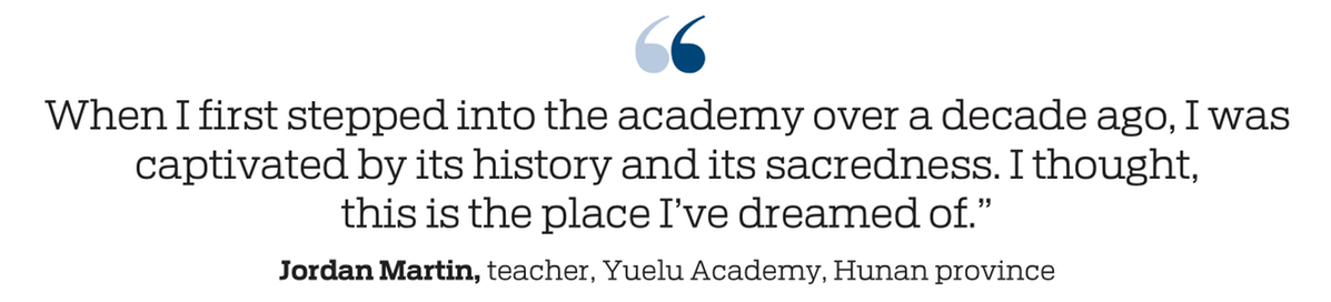 For Martin, becoming a teacher at the academy is both a source of pride and a responsibility. Not having grown up in China, he remains keenly aware of his gaps in historical knowledge. "To deserve the title 'teacher at Yuelu Academy', I need to work twice as hard," he says.
